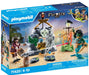 Le set PLAYMOBIL comprend deux personnages PLAYMOBIL, un repaire rocheux avec une porte en forme de toile d'araignée mobile, un canon fonctionnel, et d'autres accessoires. Le pirate, dans sa quête du trésor sur l'île des Crânes de Cristal, gagnera-t-il face à son adversaire redoutable : un personnage murène...?