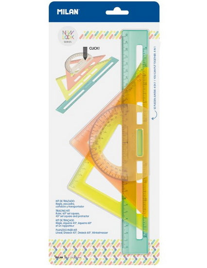 MILANOriginal price 12.99$ - Original price 12.99$Original price 12.99$12.99$12.99$ - 12.99$Current price 12.99$| /In stockDescription : Ens. géométrie 4 morceaux New LookKit de traçage New Look : règle 30 cm (verte), équerre 90º / 45º / 45º (orange), équerre coulissant...