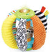 La jolie balle possÚde 6 poignées adaptées aux petites mains avec différentes matiÚres et textures pour stimuler le toucher.