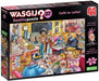Le concept du jeu de puzzle Wasgij vous met au défi d'imaginer ce que les personnages sur la boîte de puzzle regardent, car l'image que vous devez assembler n'est pas celle de la boîte, mais la scène qu'ils observent. Vous devez utiliser votre imagination et les indices présents sur la boîte pour reconstituer cette image cachée, qui révélera l'énigme de votre puzzle.