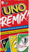 UNO Remix invite les joueurs à personnaliser le talon du jeu UNO à chaque manche. Au début de chaque manche, les joueurs ajoutent dans le talon du jeu des cartes spéciales ou des cartes action qu'ils auront personnalisées. Ils peuvent personnaliser les cartes action en y inscrivant le nom d'un joueur (par exemple, « Passer au tour de Jeff » ou « Marie pioche 2 cartes »). D'autres cartes permettent d'augmenter le nombre de cartes à piocher pour le prochain joueur, de bloquer des cartes de pénalité et plus encore ! Chaque famille ou groupe peut ainsi créer un talon de jeu unique! Et comme toujours, dès qu'il ne vous reste plus qu'une carte en main, n'oubliez pas de crier « UNO »! Les couleurs et les décorations peuvent varier.